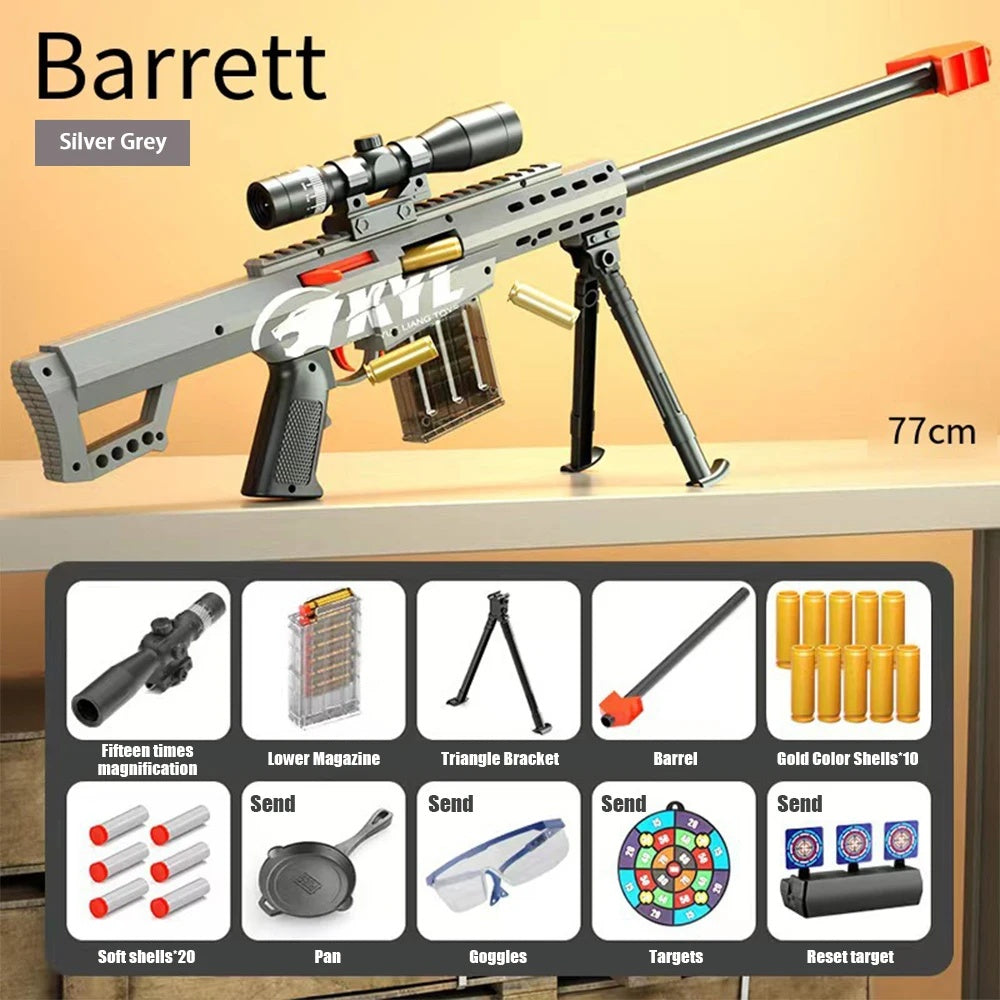 Barrett Yumuşak Mermi Silahı, Oyuncak Silah Boy Keskin Nişancı Tüfeği Modeli, Manuel Olarak Yüklenebilir, Alttan Doldurmalı Tüfek