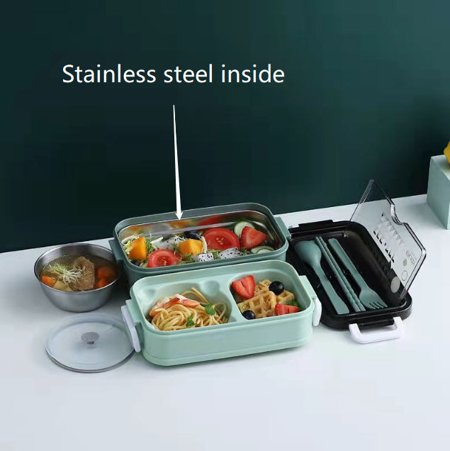 Çok katmanlı bento kutusu plastik ofis arabası mikrodalga fırında ısıtılabilir bölünmüş bölme çift katmanlı bento kutusu toptan özelleştirme