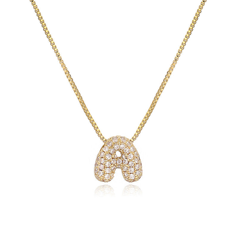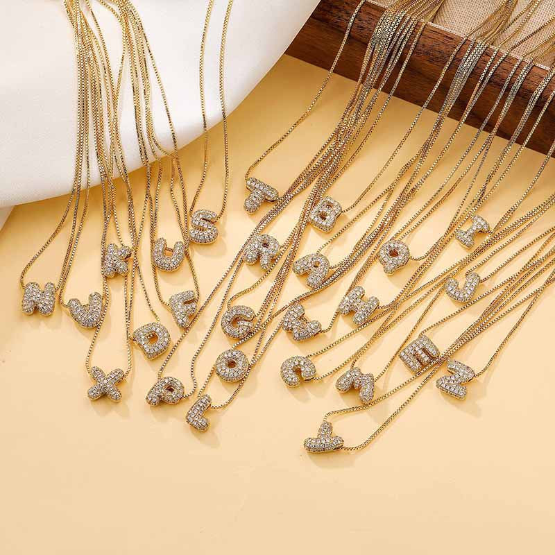 Copper Inlaid Zirconium 26 English Letters Pendant Necklace