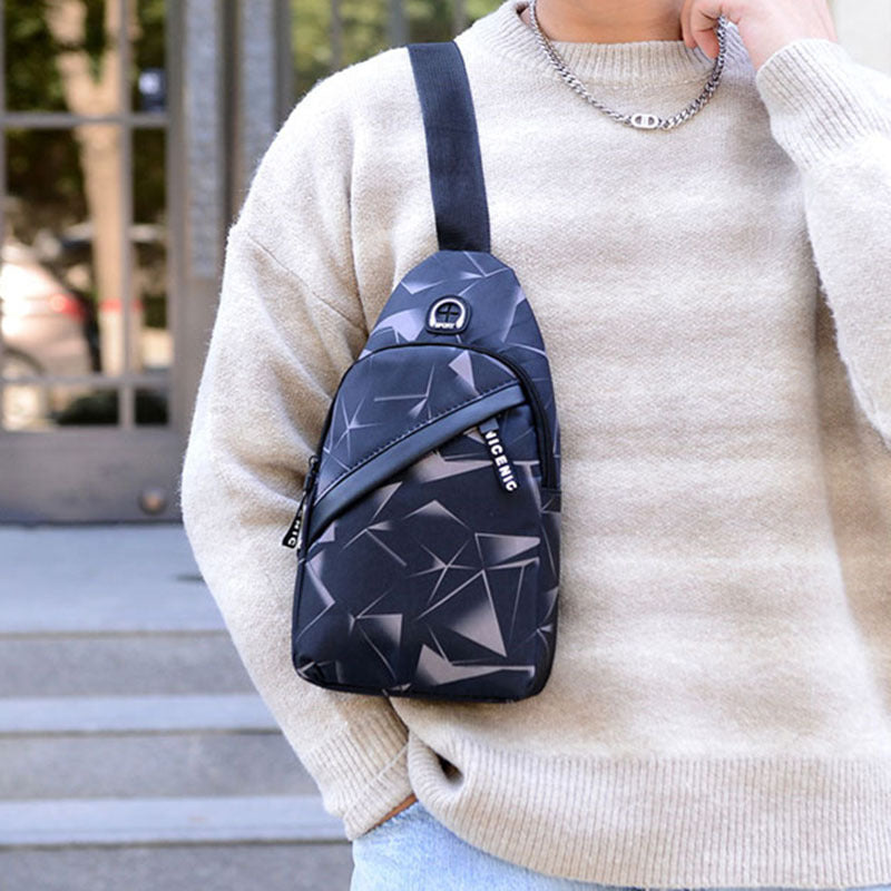 Erkekler İçin Kulaklık Delikli Baskılı Askılı Göğüs Çantası