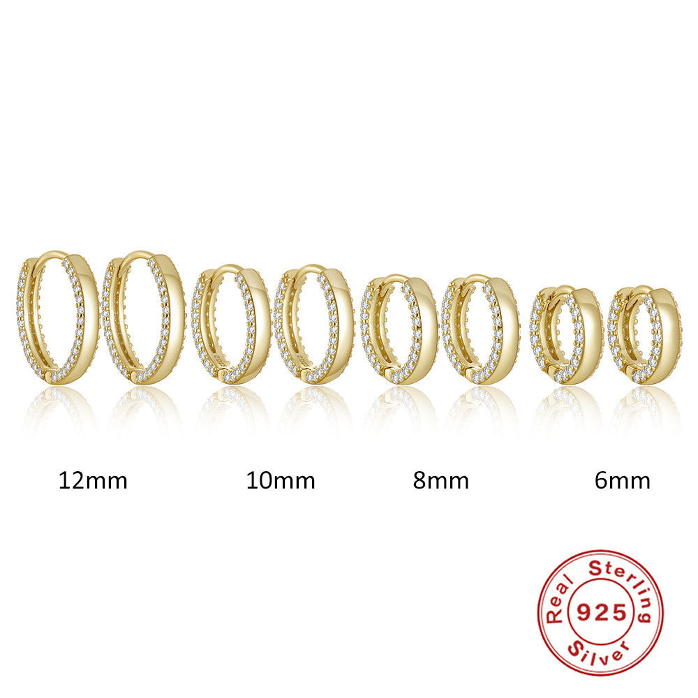 S925 Sterling Silver Classic Double Row Diamond Ear Ring